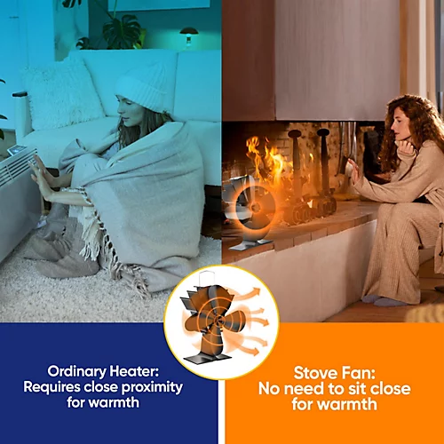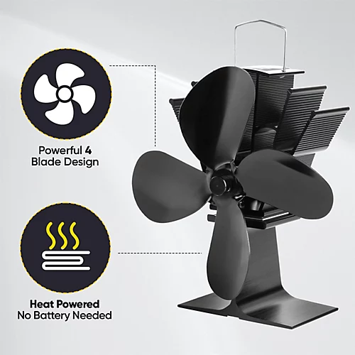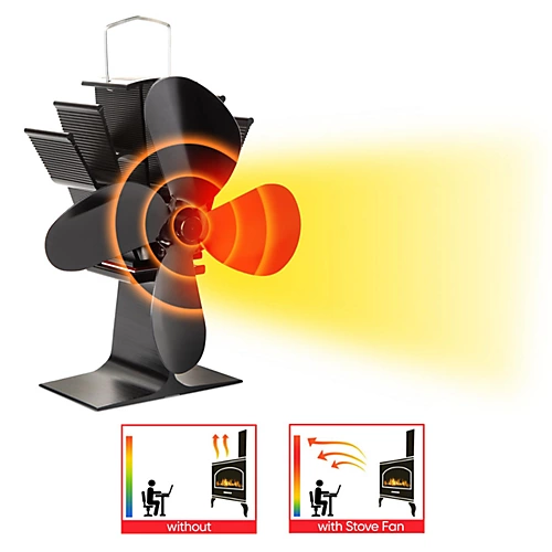 Our compact stove fan is designed for use with any stove or log wood burner, providing a hassle-free setup. The fan sits on top of any stove or log wood burner, requiring no additional installation steps. With its four aluminium blades, it distributes warm air throughout your room, providing a comfortable environment for work.