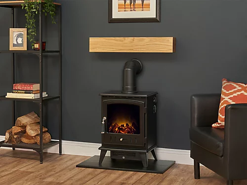 With its traditional black finish, the Aviemore is an electric stove with a difference. The real magic begins when you switch the fire on and are enveloped by the simmering glow of the realistic LED flame effect – perfect for cosy evenings. A modern iteration of a traditional design, use this classy electric stove to help define your home. Supplied with angled decorative stove pipe.