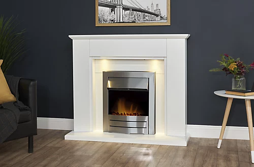 The Adam Eltham fireplace suite is a pure white surround with a modern back panel, but with a twist! The fireplace is supplied with a reversible back panel which provides you with the option of an all pure white or black finish. The Eltham is combined excellently with the brilliant Adam Colorado electric inset fire which provides a heat output of 1kW to 2kW and also features an LED flame effect only option.