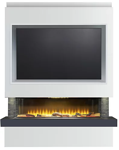 The Adam Sahara Pre-Built Panoramic Media Wall 5 with TV Recess is designed with ease-of-installation in mind, supplied in five unfinished – easy paint parts along with two real slate side panels, shelf and LED downlights. This will enable you to create your own unique focal point with the added benefit of a TV recess which can accommodate TVs up to 58 inch. Our high quality media wall package also includes the atmospheric 51 inch Adam Sahara electric inset wall fire. The fire benefits from a log fuel bed, 3D LED flame effect technology and seven colour settings as well a heat output of 1kW and 2kW which can be operated by the supplied remote control on a 7-day programmable timer. Another added feature is the 3-sided front glass panels which can be set-up with or without the front facing panel if desired. Once the media wall package is installed we guarantee that this will be the focal point of your room.