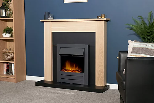 The Adam Southwold fireplace suite is an unfinished oak surround with a modern black back panel and hearth, perfect as it is or you can paint, lacquer the unfinished oak surround to add that personal and unique touch. Combined excellently with the brilliant Adam Colorado electric inset fire which provides a heat output of 1kW to 2kW and also features an LED flame effect only option.