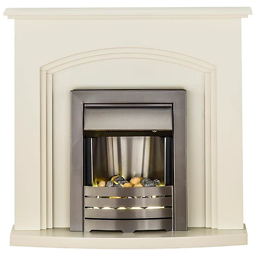 Brimming with character, the Adam Truro Fireplace Suite is a bright and lively, freestanding electric fireplace that will lighten your interior and lend it a little traditional charm. Its luscious, cream finish, soft curves and robust brushed steel Helios electric fire, every part of this fireplace suite breathes personality. Simply switch on the glowing pebble fire and enjoy a fireplace like no other.