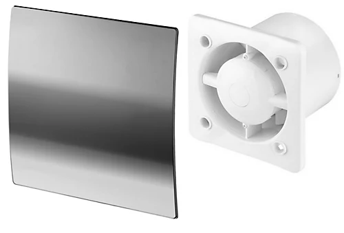 125mm Timer Chrome Silent 125mm Awenta SYSTEM+ fan that can be used on the wall or ceiling. The Turbo-version bodies have an increased capacity of 125 m3/h and have motors fitted with ball bearings. Front can be replaced by any other 125mm Awenta panel. Specifications: – Diameter: 125mm. – Version: Timer. – Front panel: ESCUDO. – Front panel material: chrome ABS. – Power: 19W, 230VAC, 50Hz. – IPX4.