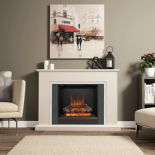 - 46″ complete electric fireplace in black with chrome effect trim & cashmere surround