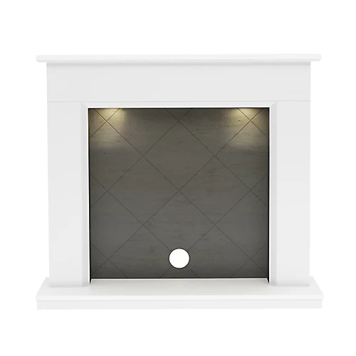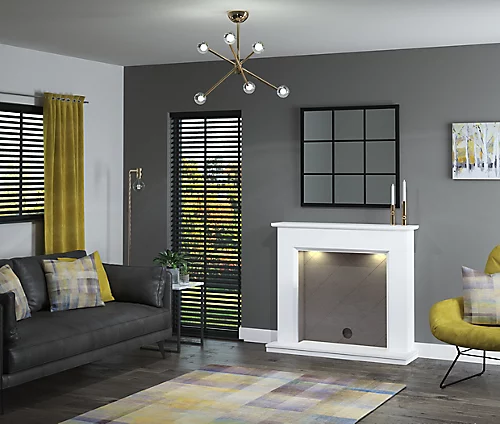 48″ Nightwood Timber Inglenook surround in an Ash White and Chicago Concrete painted finish. Complete with under mantel lighting to add an ambient glow to a living room.