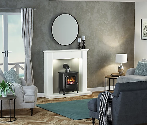 - Complete with surround, back panel and boxed & lipped hearth