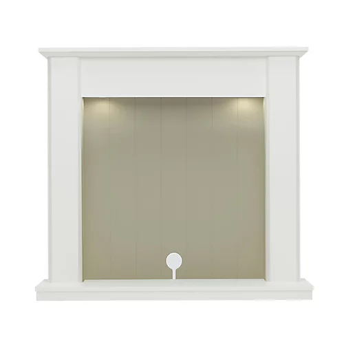 48″ Templeton Timber Inglenook surround in a Soft White and Stone painted finish. Complete with under mantel lighting to add an ambient glow to a living room.