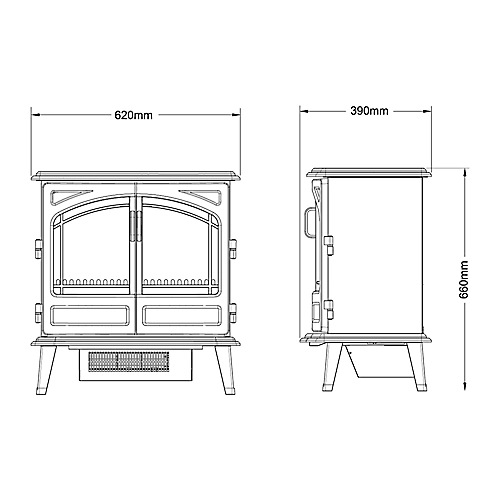 The Cassia Noir combines the classic feeling of a wood burning stove with modern electric functionality. With opening doors, a choice of log effect or coal fuel bed, and fantastic Optiflame visuals, it’s a brilliant focal point for any space. This fire can operate via a remote control and can even be used independently of the fully concealed 2kW heater, meaning you can enjoy the classic feel of the fire all year round. The thermostatic controls mean you can set your fire to produce heat when the room drops to a certain temperature, helping to maintain comfort in your home. The cast iron style is a traditional classic, fitting in with any interior