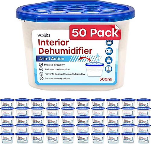 Dehumidifier for Home 500ml Condensation Remover Moisture Absorber – Pack of 50 Disposable Dehumidifiers for Damp Traps, Mould in Kitchen, Bedroom, Bathroom, Wardrobe, Caravan, Office, Garage