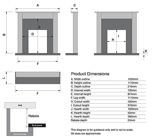 - Flat wall installation. Fits a 54″ / 1.38m wide hearth. Rebates allow you to bring the back panel forward creating a void to install a fire