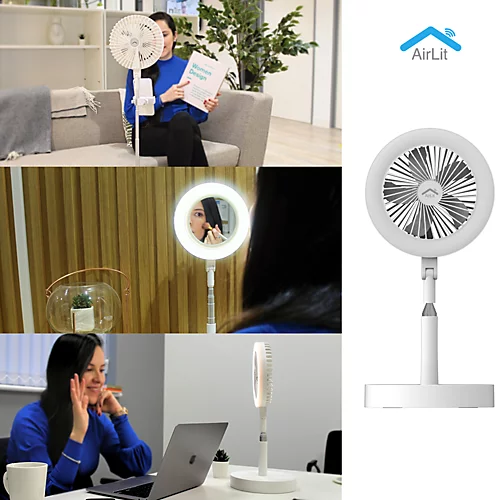 - AirLit is a multipurpose device that adapts to your lifestyle, from cooling you down to getting ready for streaming and vlogging with the perfect light adjustable to your environment. It’s your smart companion for your makeup, live streaming or even working from home.