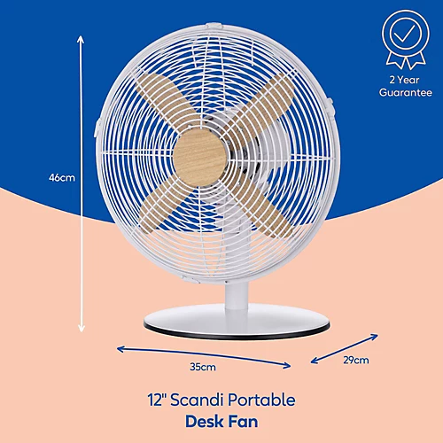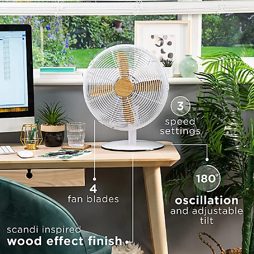 Inspired by the works of Scandinavian design, this Desk Fan has a slim weighted base and wood-effect accents, making it the perfect addition to your home or workplace.