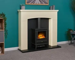 Adam Derwent Stove Fireplace In Cream & Black With Hudson Electric Stove In Black, 48 Inch