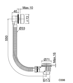 VURTU Barkway Pop Up Bath Waste, 38mm Diameter, Slotted, Black, 111114