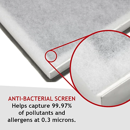 - H13 True HEPA Filter: Traps at least 99.97% of airborne particles 0.3 microns in size, such as fine dust, smoke particles, and allergens such as pet dander and pollen