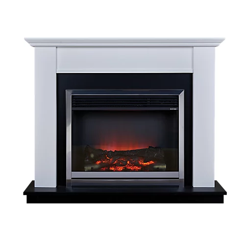 Antigua electric suite finished in white. Contemporary picture frame electric fire with up to 2Kw heat output.