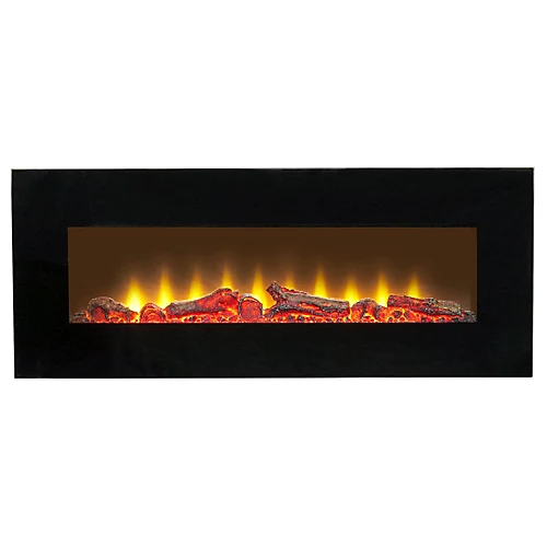 The Sureflame WM-9331 electric wall mounted fire will certainly set your imagination alight. Featuring a cool and modern design with a black glass fronted finish and a log fuel bed this fire will help create the perfect focal point for your home. The WM-9331 comes with a 7-day programmable remote and provides a heat output of 0.9kW and 1.8kW. The fantastic LED flame effect can be dimmed to suit the current mood.
