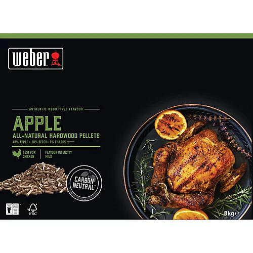 These Weber hardwood pellets are thoughtfully crafted for the best tasting BBQ, designed to enhance the flavour of your food with no fillers, just authentic wood-fired taste. With medium intensity and impressive results these wood pellets are best for chicken!